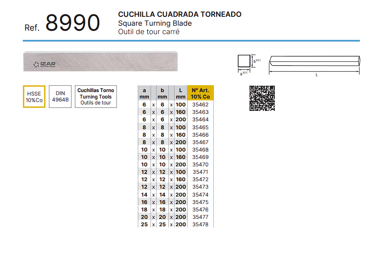 6x6x100, 8x8x100, 10x10x100, 10x10x200, 12x12x200, 16x16x200, 20x20x200