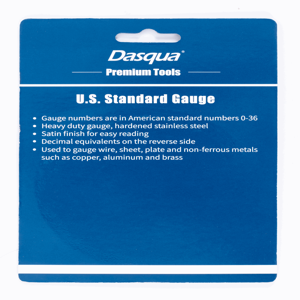 -Los números de calibre están en el estándar americano del 0 al 36. -El calibre es resistente, hecho de acero inoxidable endurecido. -Tiene un acabado satinado para facilitar la lectura. -En el reverso, hay equivalentes decimales. -El diámetro es de 3-1/4 pulgadas (83 mm). -Se utiliza para calibrar alambres, láminas, placas y metales no ferrosos como cobre, aluminio y latón.